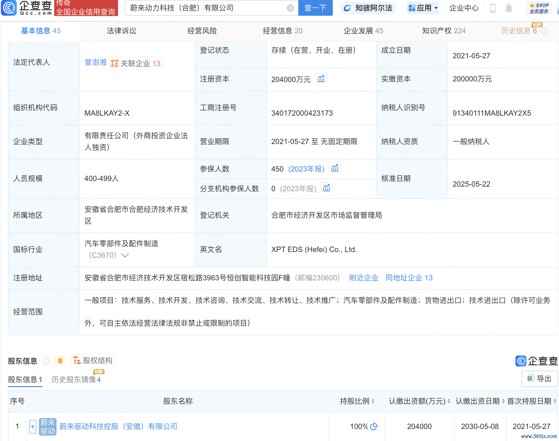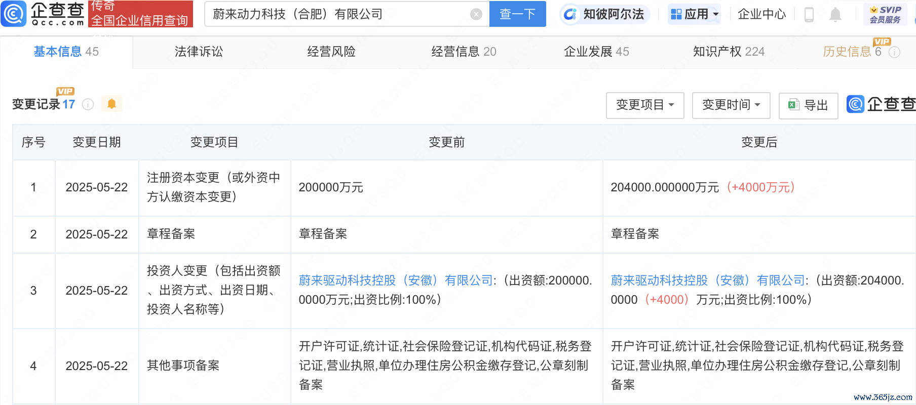 企查查APP显示,近日,蔚来动力科技(合肥)有限公司发生工商变更,注册资本由20亿人民币增至20.4亿人民币。企查查信息显示,该公司成立于2021年配资网在线配资平台,法定代表人为曾澍湘,经营范围包括汽车零部件及配件制造、货物进出口、技术进出口等,由蔚来驱动科技控股(安徽)有限公司全资持股。